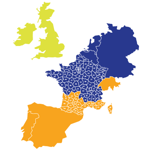 Paris, Nord, Est, Ouest, Benelux, Allemagne
